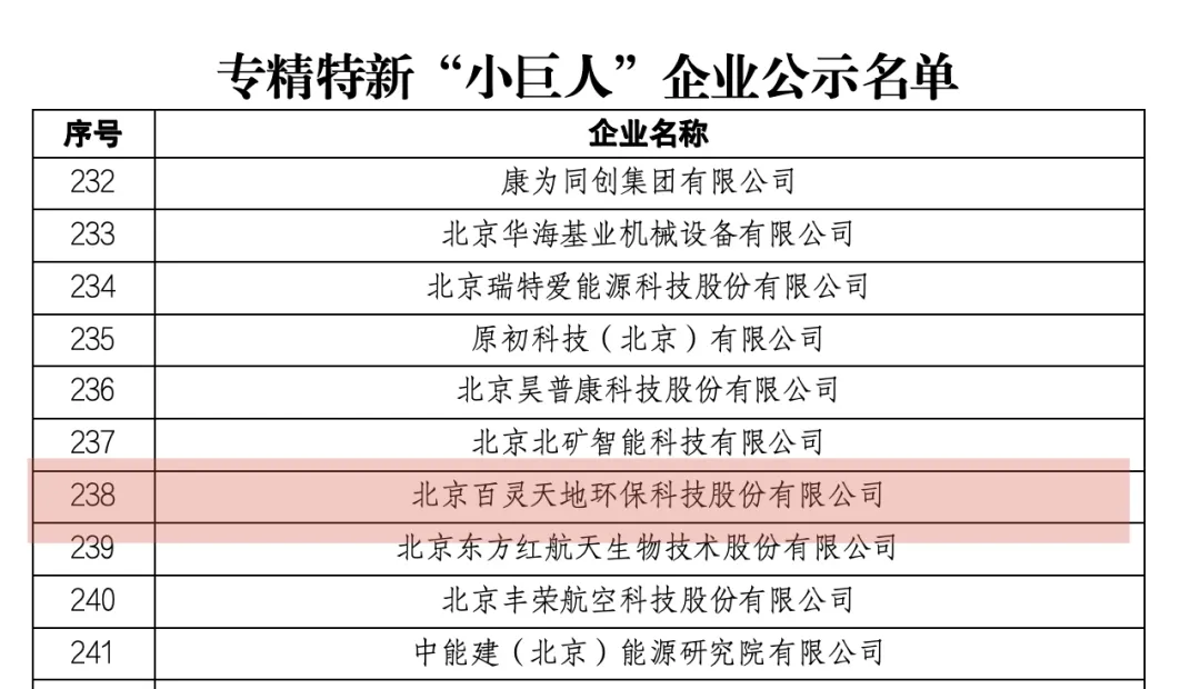 喜訊|百靈天地榮膺國(guó)家級(jí)專精特新“小巨人”企業(yè),以創(chuàng)新之力領(lǐng)航環(huán)保產(chǎn)業(yè)新征程